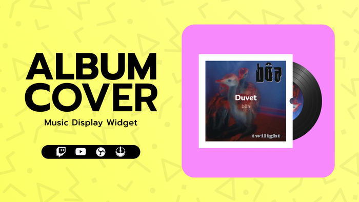 Showcase your current music in style with the Album Cover Music Widget. This sleek widget features a spinning vinyl record alongside the album cover. Compatible with Spotify, Apple Music, SoundCloud, and more, it seamlessly integrates into your stream. Fully customizable and easy to set up, it’s optimized for StreamElements and works perfectly with Twitch and YouTube streaming platforms.