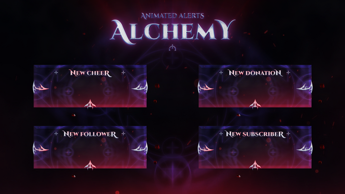 Unleash the Magic! Alchemy — a mystic stream alerts package for all the fantasy lovers. Its design works best with RPG, MOBA and MMORPG Games. These alerts are part of the Alchemy Stream Package. Works with Twitch, YouTube, Facebook Gaming and supports OBS Studio, Streamlabs and StreamElements.