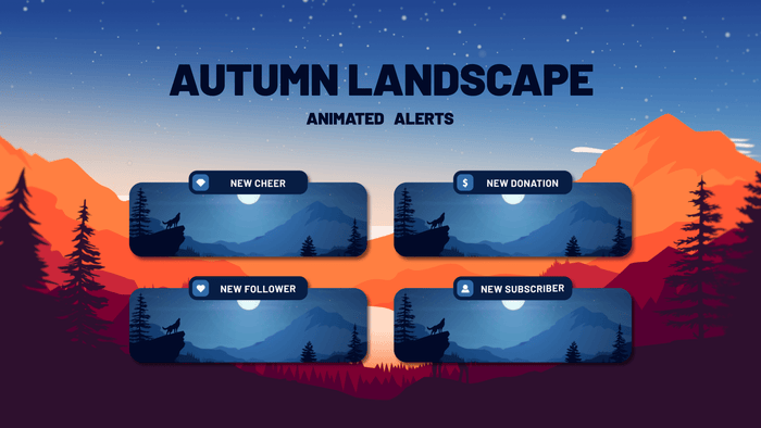 Breathe The Wild with Autumn Landscape — atmospheric stream alerts inspired by nature. This pack is your best choice for the fall season. These alerts are part of the Autumn Landscape Stream Package — works with Twitch, YouTube, Facebook Gaming and includes Quick Installs for Streamlabs and StreamElements.
