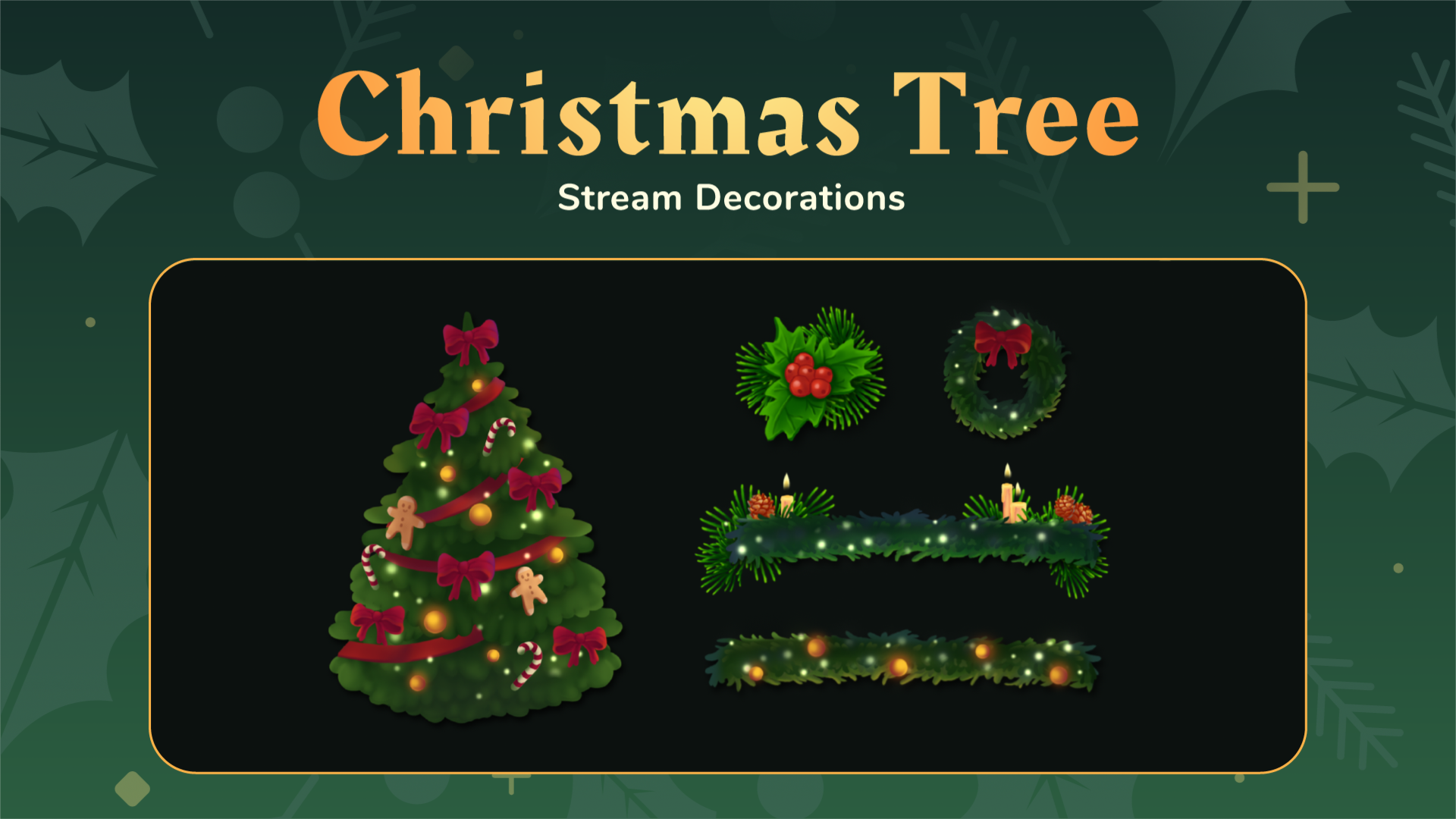 Add a festive touch to your stream with Christmas Tree Stream Decorations — a collection of five unique Christmas trees, wreaths, and holly arrangements. From traditional decorated pines to elegant candlelit wreaths, these assets bring the magic of the holiday season to your live streams. Delivered as high-quality PNG files, they’re perfect for customizing your stream layout. Available in .webm and .mov formats, they’re compatible with OBS Studio, Streamlabs, XSplit, and video editors like Premiere Pro and DaVinci Resolve.