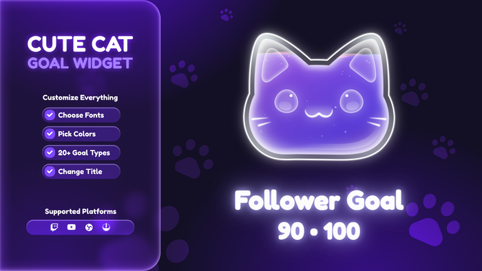 Add purr-fect charm to your stream with the Cute Cat Goal Widget — an animated overlay that displays your stream goals using adorable cat visuals. Whether you’re tracking followers, subs, or tips, this widget brings cozy energy and kawaii flair to any layout. Works seamlessly with Twitch, YouTube, OBS Studio, and StreamElements.