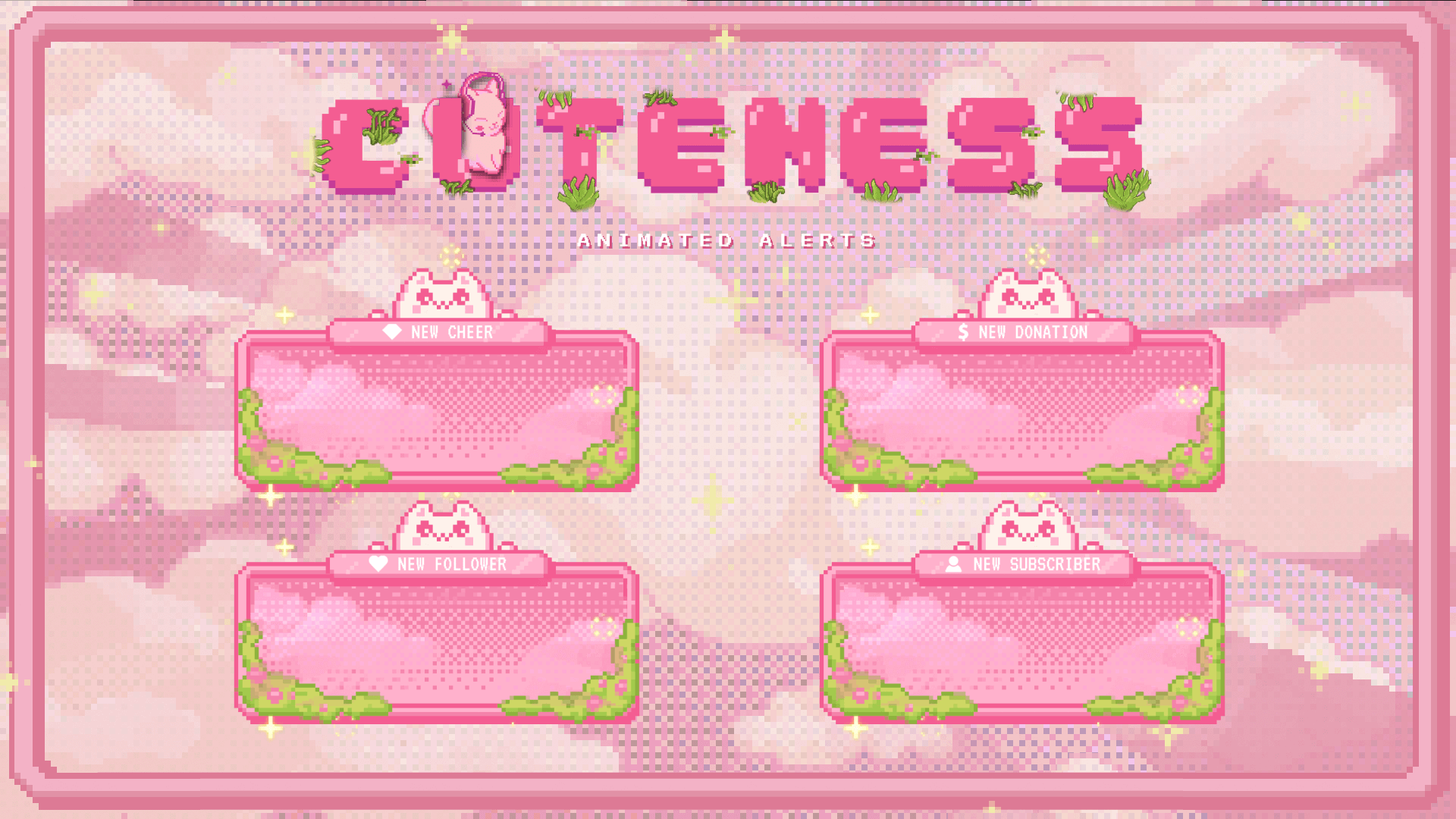 Kawaii! Cuteness — charming alerts for your stream. These Alerts are part of Cuteness Stream Package — how can someone resist this level of loveliness? Supports Twitch, YouTube, Facebook Gaming and includes Quick Installs for Streamlabs and StreamElements.