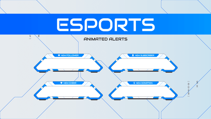 Clutch them all with Esports Blue — stream alerts for those who strive to compete! These minimalist yet futuristic alerts work best with competitive FPS games but fit other styles well. These Alerts are part of the Esports Blue Package. Compatible with Twitch, YouTube, Facebook Gaming and supports OBS Studio, Streamlabs and StreamElements.