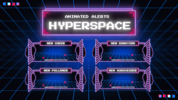 Virtual Reality is Here! Hyperspace — retro-futuristic stream alerts inspired by 8bit games. This stylish design combines pixel-art with 3D and fits to every kind of stream. These Alerts are part of the Hyperspace Stream Package. Works with Twitch, YouTube, Facebook Gaming and supports OBS Studio, Streamlabs and StreamElements.