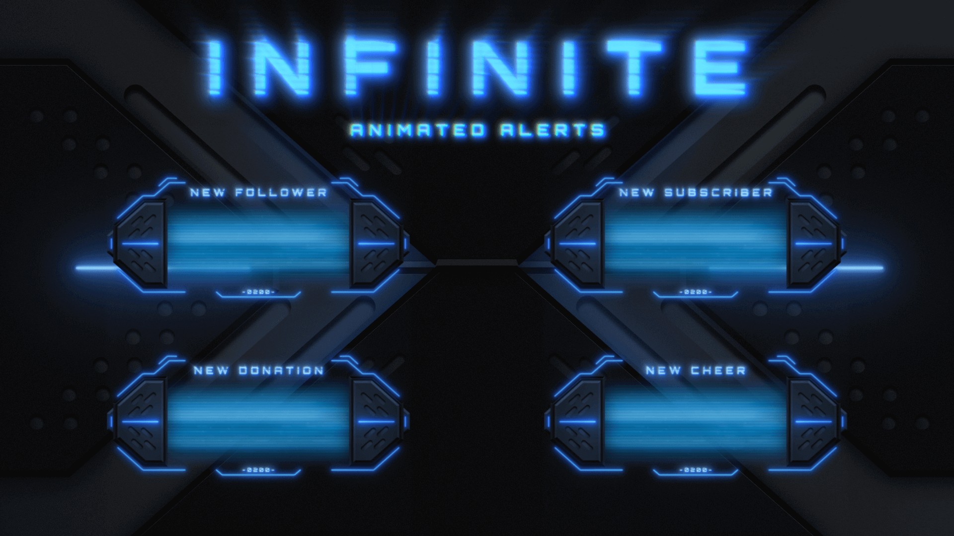 Become a Master Chief with Infinite — a Halo-themed alerts pack for your stream. Its futuristic design suits best to any competitive and FPS game. These Alerts are part of Infinite Stream Package. Works with Twitch, YouTube, Facebook Gaming and supports OBS Studio, Streamlabs and StreamElements.