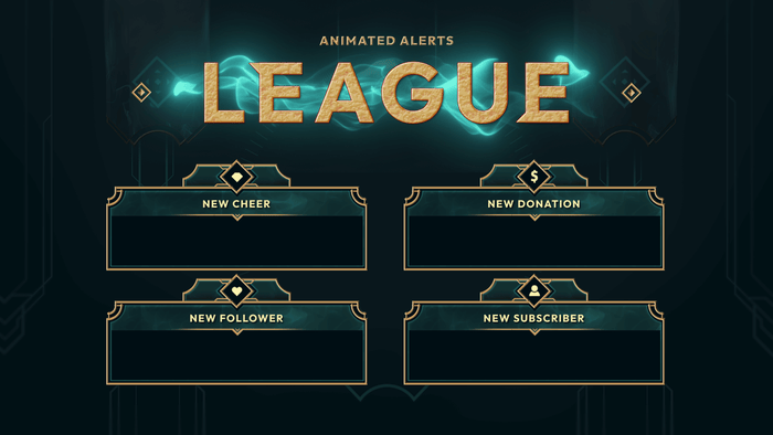 Become the Champion! League — an epic stream alerts package inspired by League of Legends. Its design suits any game and cause but works best with MOBA games such as LOL. These alerts are part of League Stream Package. Works with Twitch, YouTube, Facebook Gaming and supports OBS Studio, Streamlabs and StreamElements.