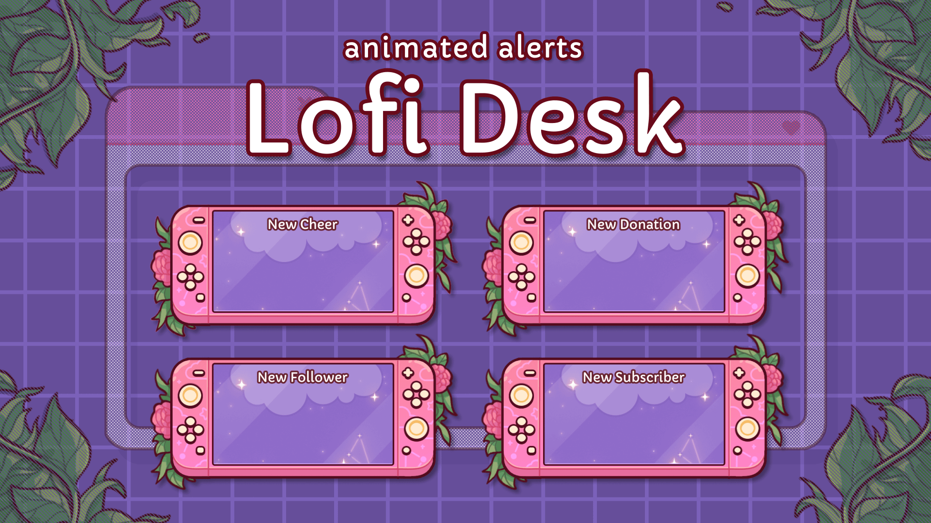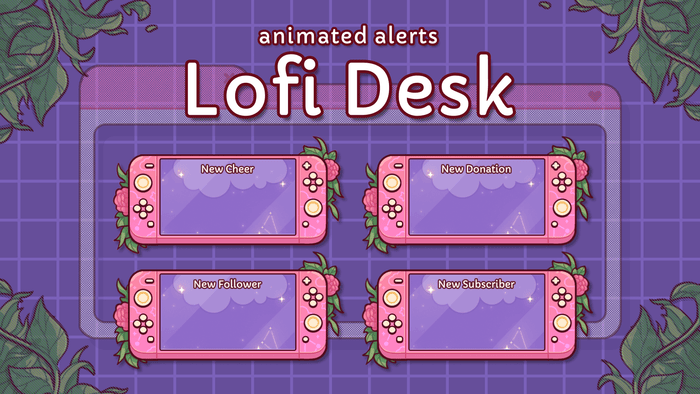 Step into nostalgia with Lofi Desk — charming stream alerts that capture the essence of lo-fi and Y2K aesthetics. A warm pastel color palette and cute retro vibes make these alerts the perfect addition to your streaming setup. These alerts are part of the Lofi Desk Stream Package. Works with Twitch, YouTube, Facebook and supports OBS Studio, Streamlabs, and StreamElements.