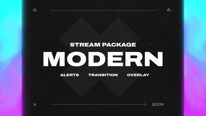 Get Stylish with Modern — a trendy stream overlay package with contemporary design. Vibrant gradients combined with slick typography will make your stream stand out from the crowd. All assets included — Stream Screens, Overlays, Stinger Transition, Alerts and many more. Works with Twitch, YouTube, Facebook and supports OBS Studio and Streamlabs.