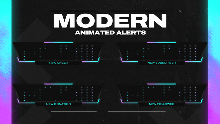 Get Stylish with Modern — trendy stream alerts with contemporary design. Vibrant gradients combined with slick typography will make your stream stand out from the crowd. These Alerts are part of the Modern Stream Package. Works with Twitch, YouTube, Facebook and supports OBS Studio, Streamlabs and StreamElements.