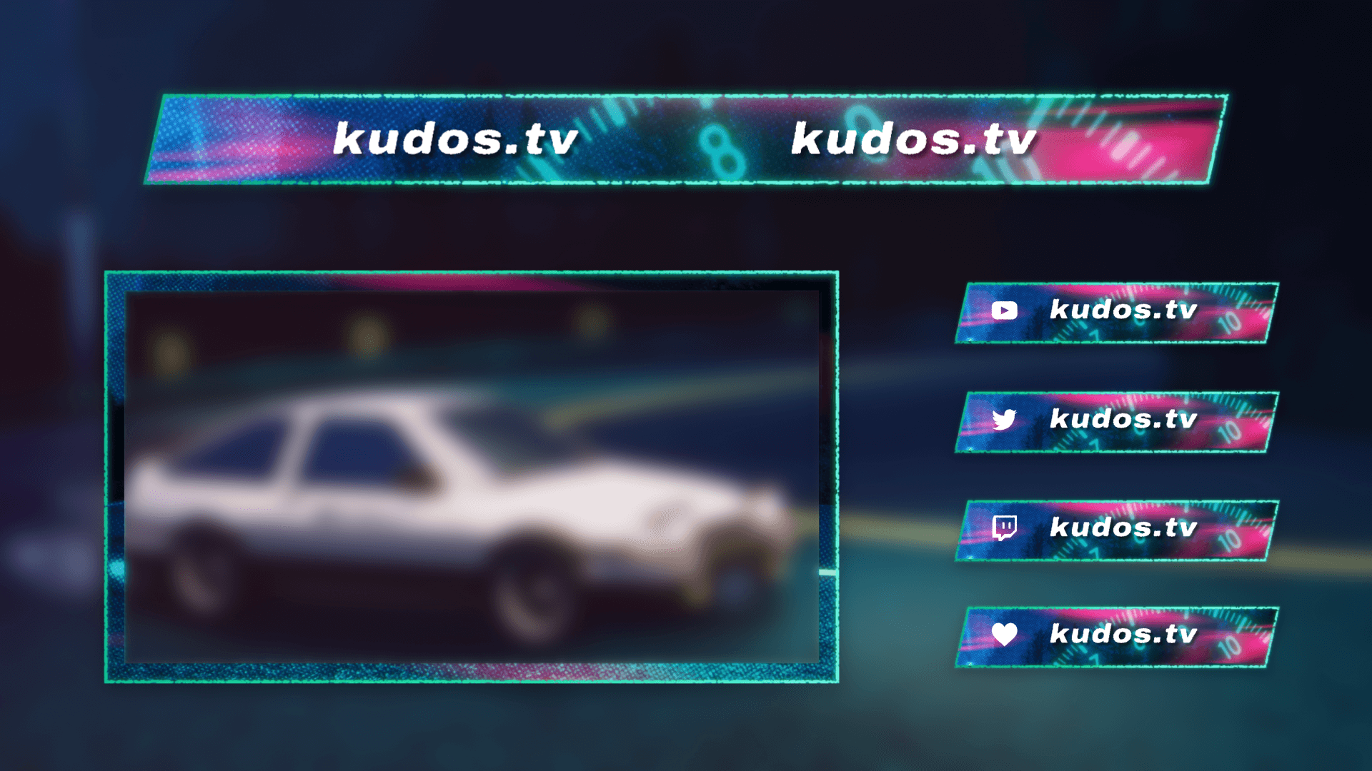 Get Drifting with Phonk — racing stream overlays with retro anime aesthetics. This pack has webcam overlay, header, stream labels and more! These overlays are part of the Phonk Stream Package. Works with OBS Studio, Streamlabs and other streaming software.