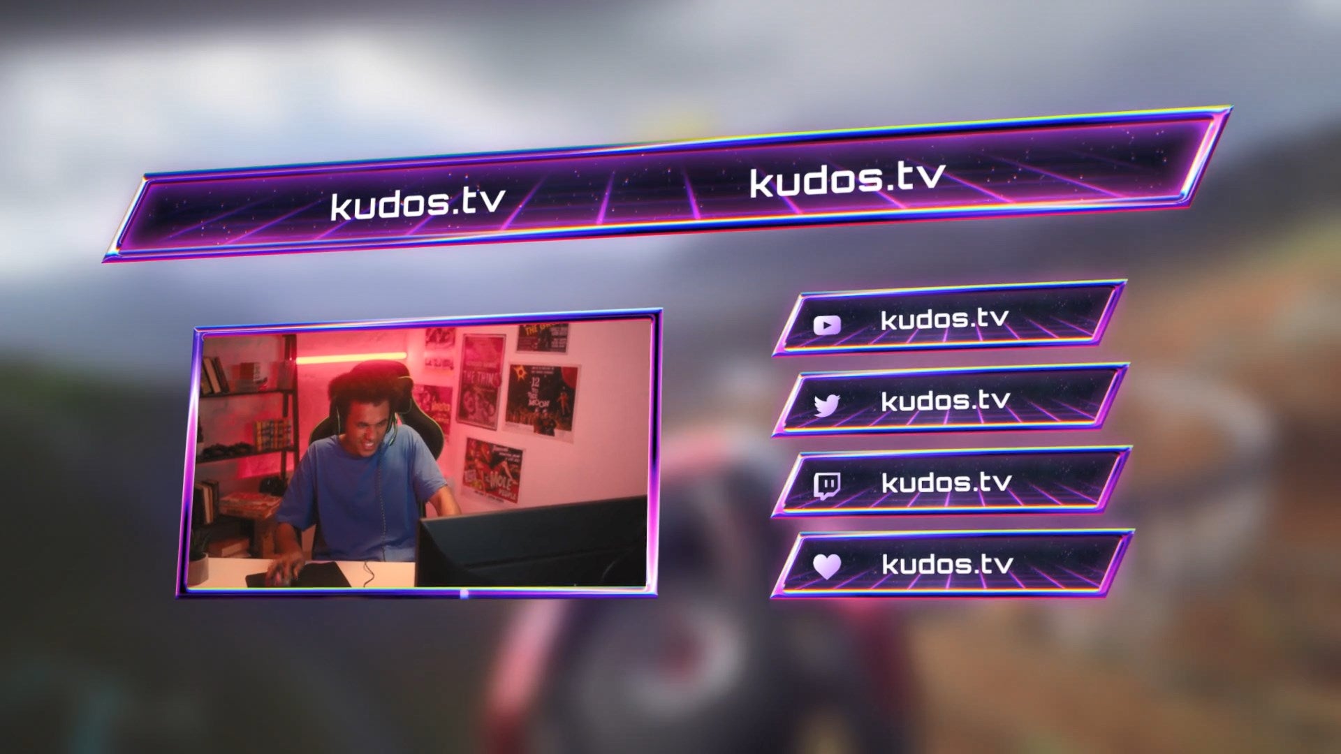 Back to The Future! Retro Neon — essential retro-futuristic stream package that adds some proper nostalgic atmosphere to your stream. This theme is a perfect choice if you’re fond of 80’s aesthetics and want to achieve that classic VHS retro look. This pack includes every important stream asset — Stream Screens, Overlays, Stinger Transition, Alerts and many more. Supports Twitch, YouTube, Facebook Gaming and works with your favorite streaming software.