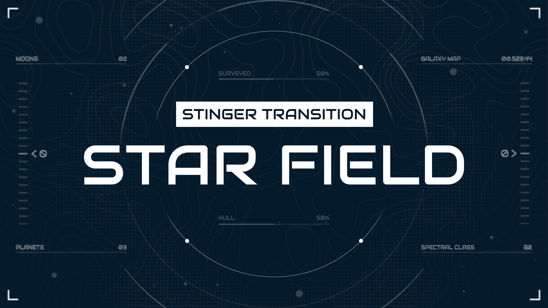 Take Your Stream Beyond the Horizon with Star Field — a Starfield-inspired stinger transition that's sleek and simple. Whether you choose blue or white, it'll make each scene change smooth and spacey. This stinger transition is part of the Star Field Stream Package. Works with OBS Studio, Streamlabs, and any streaming software.