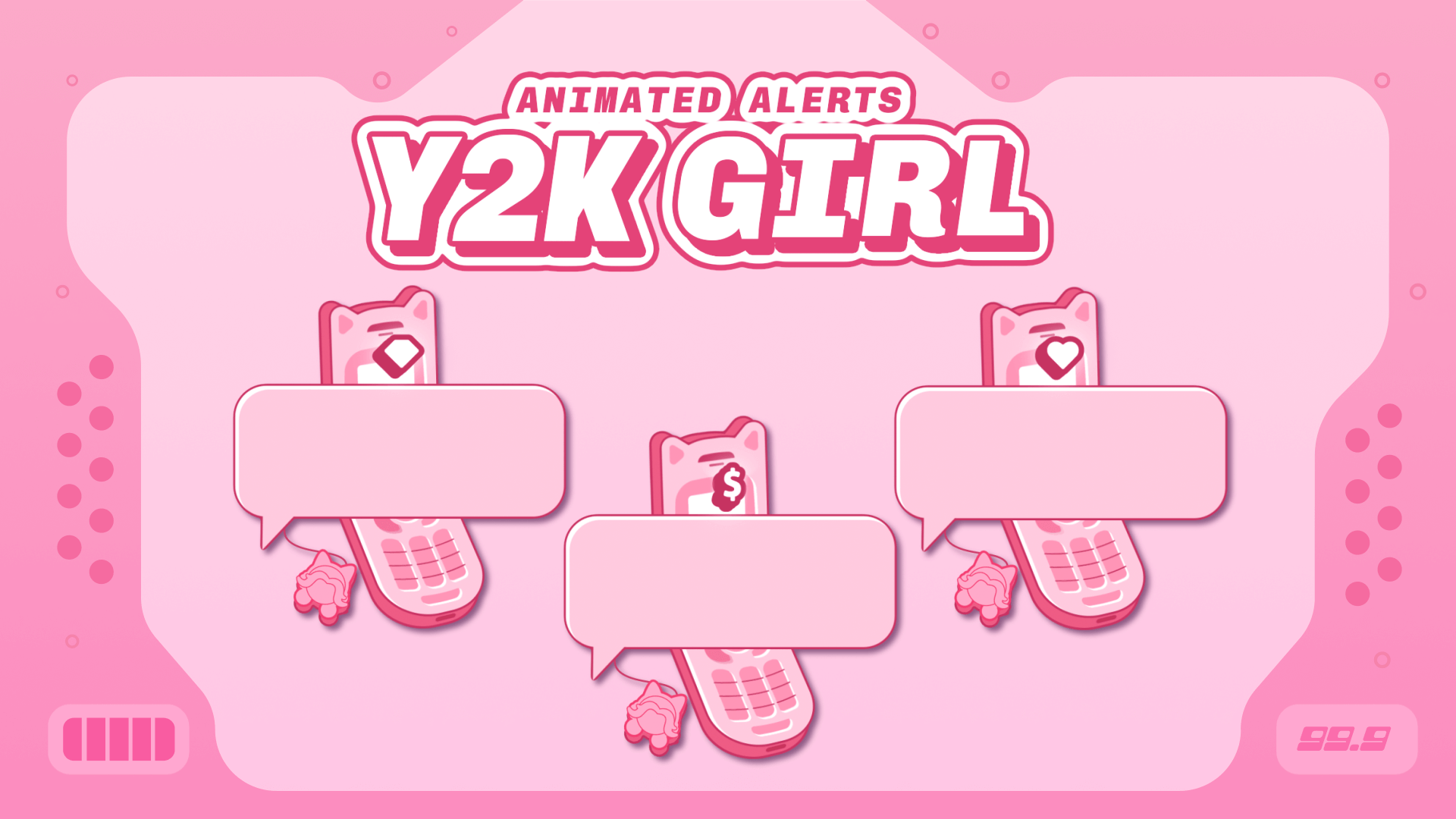 Bring the early 2000s to life with Y2K Girl — stream alerts that capture the fun and flirty vibe of the era. With a vibrant pink palette and playful design, these alerts will add a charming retro touch to your stream. These alerts are part of the Y2K Girl Stream Package. Works with Twitch, YouTube, Facebook and supports OBS Studio, Streamlabs, and StreamElements.